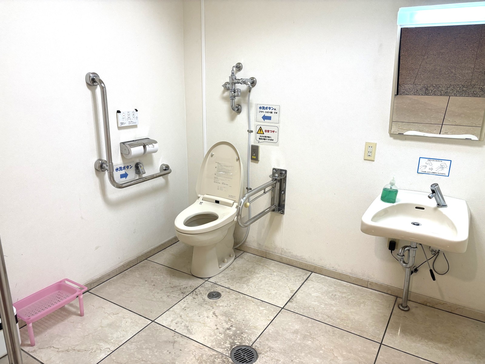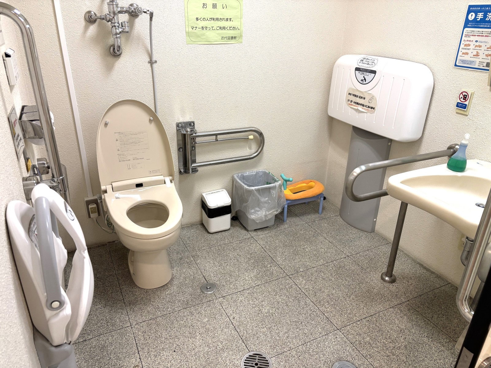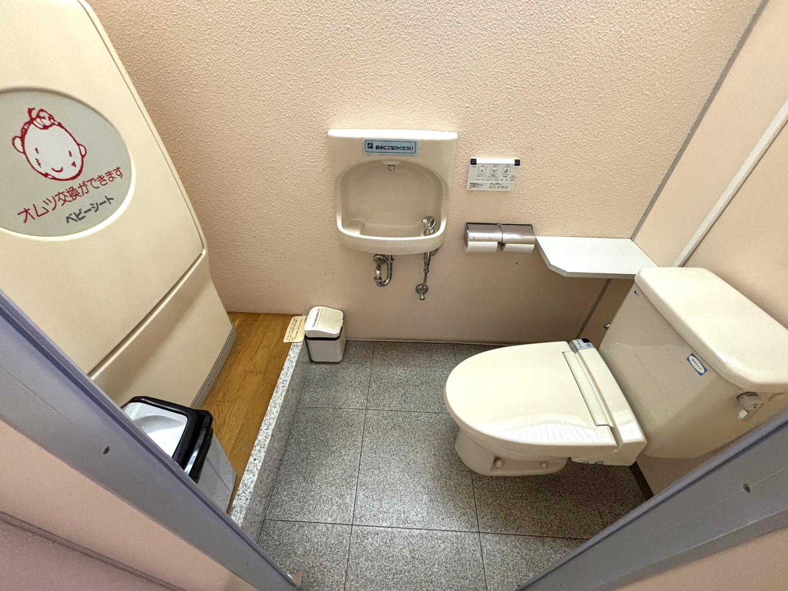 館内にはエレベーター・車いす対応トイレ・授乳室・おむつ交換台がそろい、誰でも安心して利用できます。