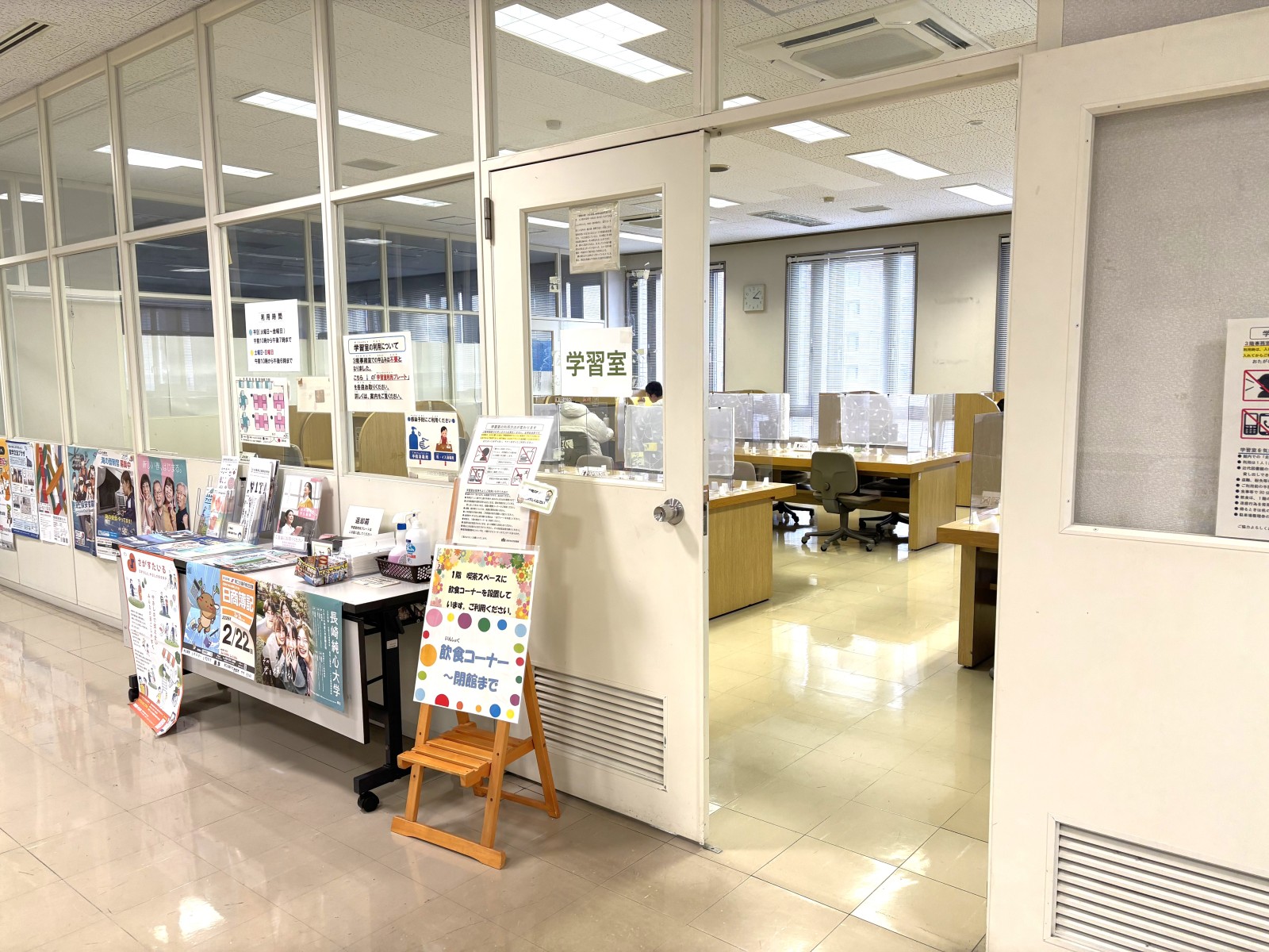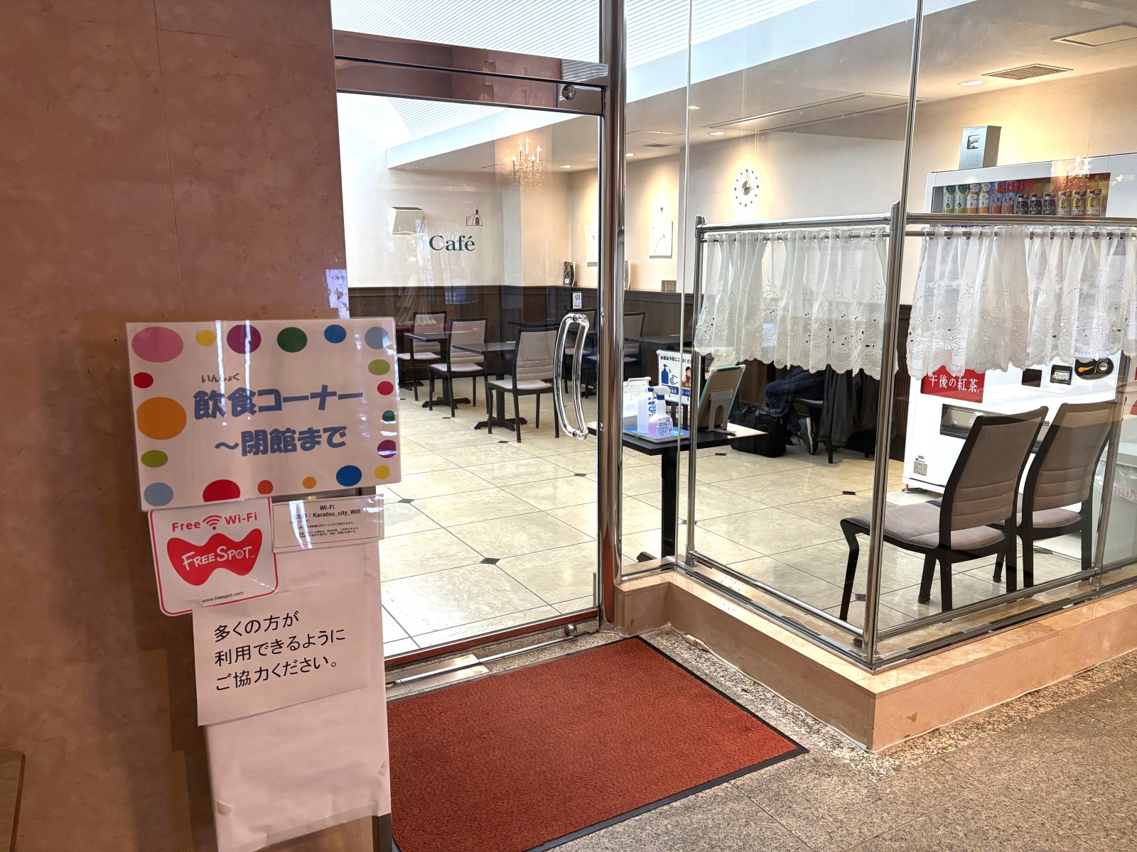 正面玄関のほかに、唐津駅側北出入口と駐車場側西出入口からも入館できます。
