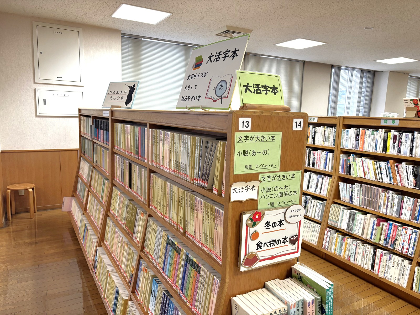 本棚は高すぎず、車いすの方やお子さまでも手が届きやすい配置です。