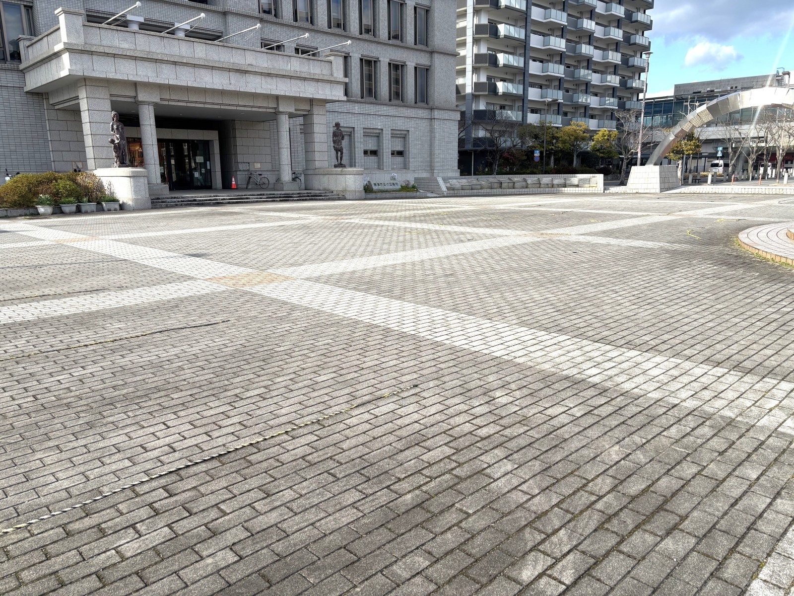 イベント時など、図書館裏の駐車場が満車になる際は、図書館前広場を駐車場として開放しています。