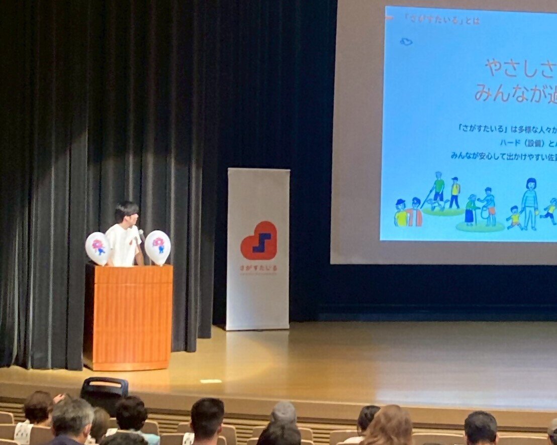 イベントの冒頭、まず紹介したのは、佐賀県が広めている「さがすたいる」の取り組み。お互いを知る、認め合う、寄り添う、準備する、見守る、声をかけ合う、手伝うといった、しぜんのやさしさが実践されることで、誰もが安心してお出かけできる佐賀に。